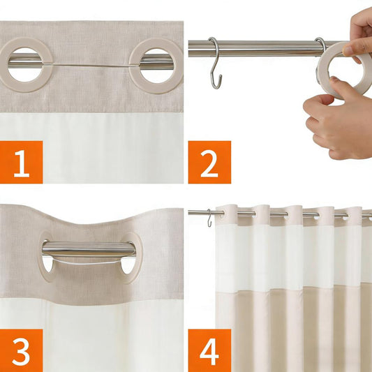 2-in-1 Linen Shower Curtain with Snap-On Water-Repellent Liner (71"×74")