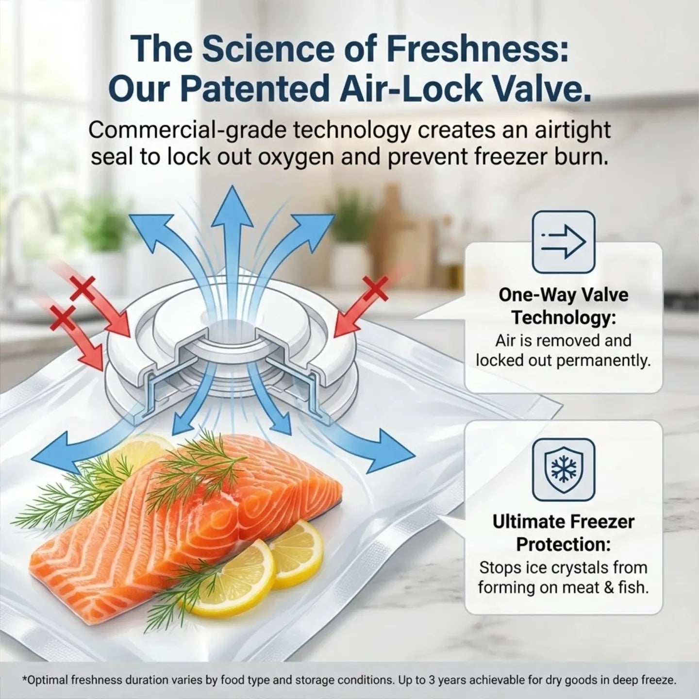• 60kPa Vortex Suction:Removes 99.9% air in8 seconds.